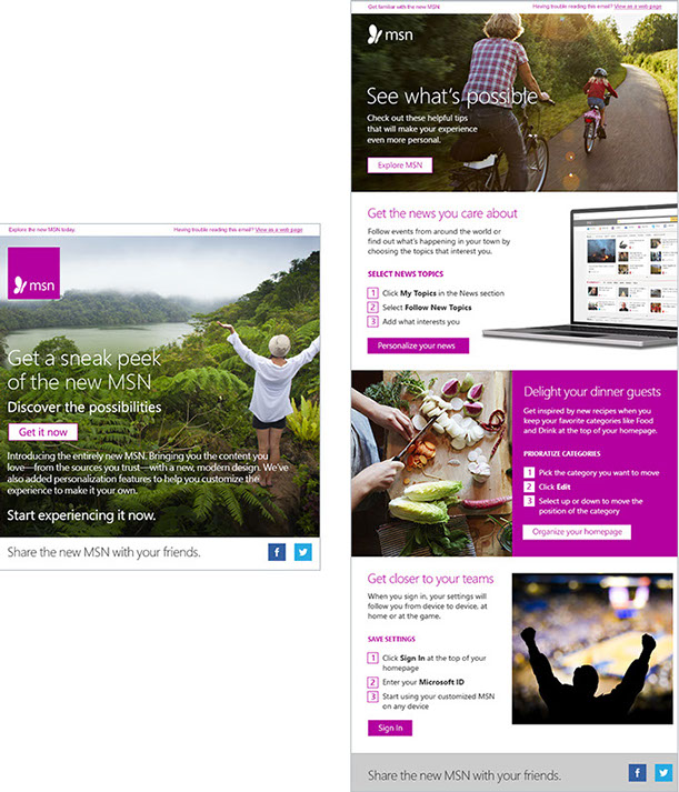 New MSN onboarding emails